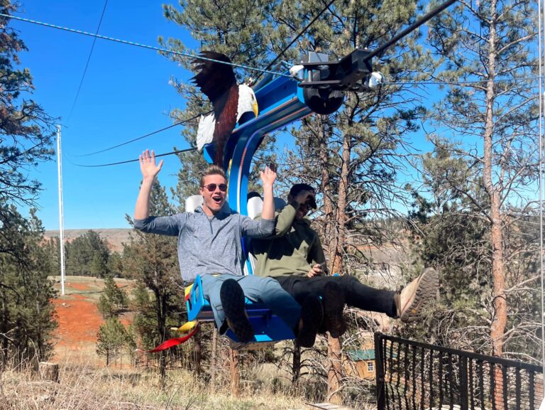 Take the thrill to new heights with the Soaring Eagle! This brand-new attraction lets you soar above the treetops, offering breathtaking views of downtown Keystone and the stunning Black Hills landscape—all with an exhilarating twist.