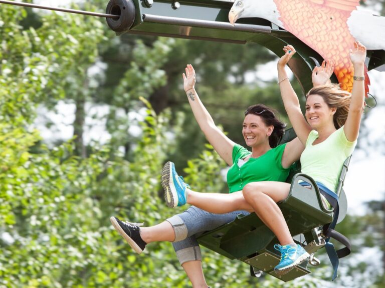 The Soaring Eagle is a family-friendly zip ride that lifts you backward to a towering height before releasing you for an electrifying descent. Experience the rush of flying side by side with a friend or family member, feeling the wind in your face as you race toward the landing. Whether you’re a thrill-seeker or just looking for a new way to take in the incredible scenery, the Soaring Eagle is a must-try adventure!